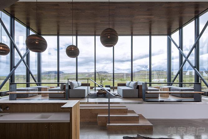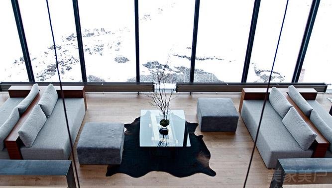 偌大的玻璃落地窗讓室外的迷人風景一覽無遺,選擇木質原生態家裝搭配加上現代工業風裝潢,給人感覺舒適簡單又不乏高級質感,這種風格歐洲尤為普遍。望著夏有蒼木,冬有白雪的自然風光,地理位置的優越已然加分太多。