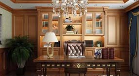 賦予古典文化藝術精髓的原木色是高端人士的首選,靜坐在書房中,捧一本書,感受由大自然橡木散發的氣息,是一種由心發出的感慨。皇庭莊園全屋定制,木質的細膩、溫和,色澤的美觀和圓潤,在那一剎那達到頂峰。