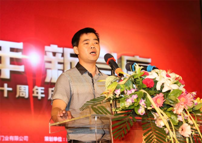 晚宴上,廣東省門業協會會長關潤開代表了廣東省門業協會向皇庭金門致以最熱烈的祝賀,他說:“皇庭金門在過去十年一直注重產品研發和品牌建設,定位高端市場,贏得了市場,贏得了口碑,成為中國鋁門窗優秀企業之一,并祝愿皇庭金門越來越強大,廣東門業也會在寒冬中發展的越來越好”。廣東省門業協會鎖具五金專委會會長陳鴻填、廣東省門業協會秘書長徐生陸續致辭祝賀皇庭金門在未來十年邁向更高的臺階。