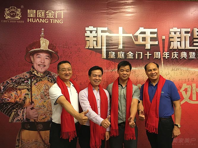 5月16日,“新十年 新皇庭”皇庭金門十周年慶典活動暨新品發布會在佛山南海祈福仙湖酒店隆重舉行。皇庭金門董事長許云旺,廣東省門業協會會長、潤成創展木業董事長關潤開,廣東省門業協會鎖具五金專委會會長、匯泰龍五金董事長陳鴻填,廣東省門業協會秘書長、美家美戶傳媒董事長徐生,帷道營銷集團創始人吳學軍以及門窗行業同仁和皇庭金門優秀經銷商等1000余人參與盛會。美家美戶家居網、《居舍·中國門窗》、百度家居、廣東建設報、新浪家居、慧聰網、廣東門窗網、廣州日報、佛山日報、慧亞傳媒、門道網等知名媒體現場報道。