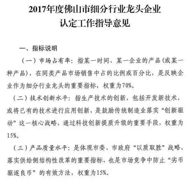 據了解,此次評選細分行業龍頭企業的要求相當高,要求通過市場占有率,技術創新水平,產品質量水平三項按權重比例評選得出。