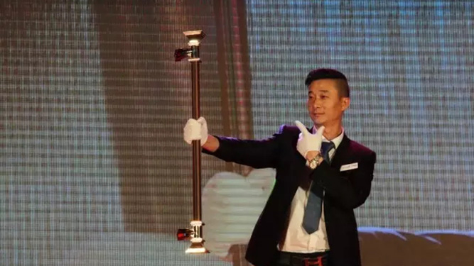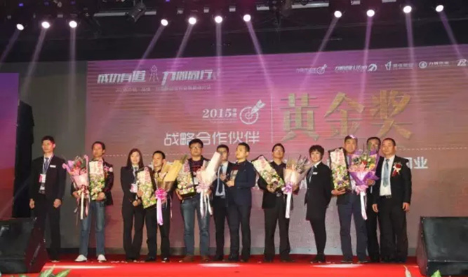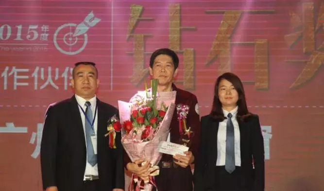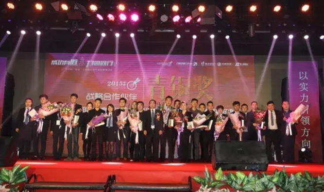 為感恩與回饋客戶,力帆鋁業特別設立了3個獎項青銅獎、白銀獎和黃金獎。來獎勵在2015年銷售額前列的客戶,其中還特地設立了萬里挑一的戰略合作鉆石獎,獲獎的是艾怩美門窗覃茂明先生,力帆還特意用無人機帶著獎品現金支票3萬元“從天而降”,而且在臺上就讓這張支票兌現,創意十足!