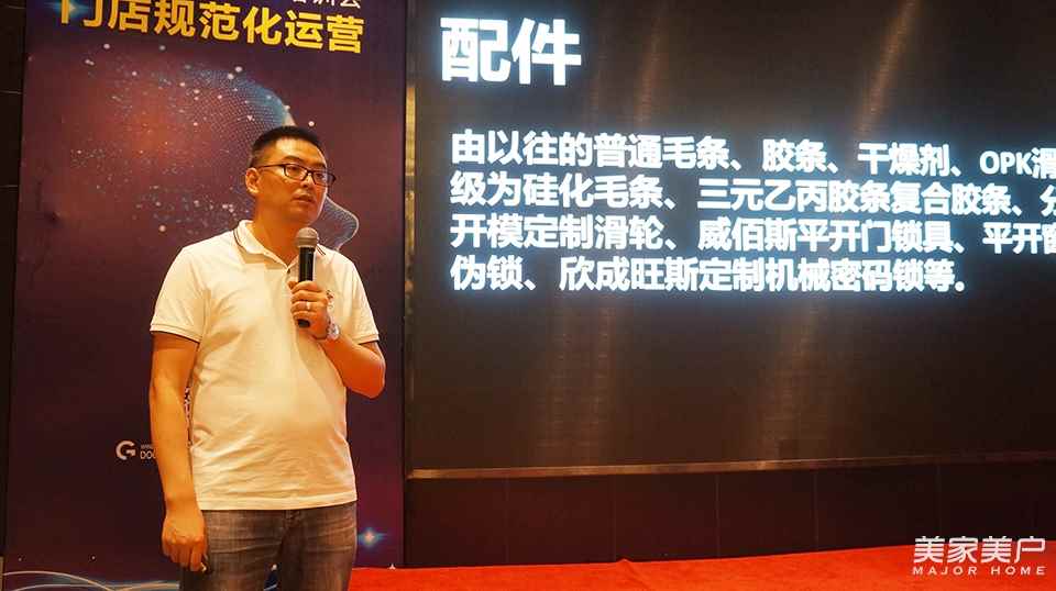 會上,四川金致尚品門窗有限公司董事長范澤金首先發言,代表公司熱忱歡迎前來參加培訓會的各位經銷商,勉勵大家在本次培訓中收獲新的知識,希望大家將獲得的知識學以致用,在今后的銷售、管理工作中更上一層樓。隨后,范澤金作了“2019產品系統升級與新品預告”的演講。演講中,范澤金深入淺出為參會經銷商講解了產品系統升級的必要性與實用性。其中,設備、服務、配件、產品等方面的升級、換代成為了產品系統升級板塊的重要內容。范澤金說:“金致尚品自建廠以來,設備經過幾次的升級換代,現在已經完全可以把控生產源頭。目前,數控設備正在增加和改換,預計8月上旬完成此項工作。”同時,金致尚品門窗在服務工作上狠下功夫,改變過去加工作坊式的單人傳統服務模式,并且有望在年底全面實施、推行服務新高度。另外,金致尚品門窗全面升級門窗配套產品,自主開發定制各類專屬配件。同時,將過去的普通斷橋窗升級為多腔體系統斷橋窗、普通平軌升級為階梯式疏導型排水系統、單色料升級為非斷雙色型材。
