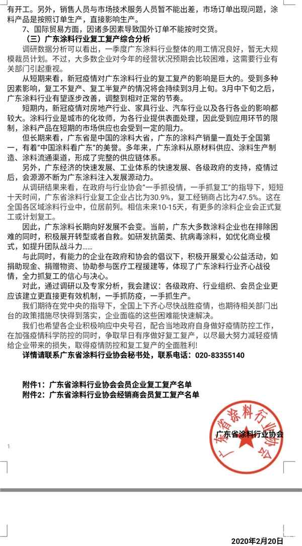 2月17日,廣東省涂料行業協會發布《廣東省涂料行業復工復產調研通知》,就會員企業“復工時間”、“復工面臨的困難”、“企業信心”等幾方面問題展開調研,得到了省內眾多會員企業的積極反饋。