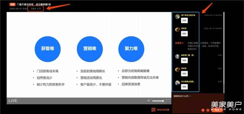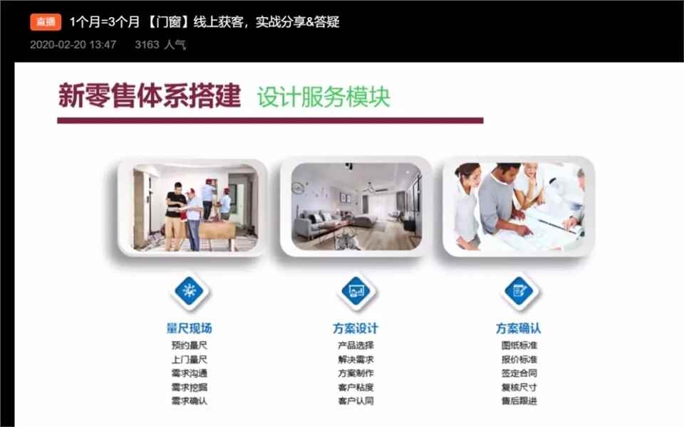 原來各門窗企業和門店受此次突發疫情的影響,復工遭遇重重困難。酷家樂了解到很多門窗企業都想做線上營銷,但苦于沒思路,沒方向,沒工具,無從下手,無比焦慮,因此特聯合引擎動力、廣東省門業協會、中華門窗網,免費推出“門店如何線上獲客”主題公益課程系列,幫助門窗企業梳理互聯網營銷思路,主動破局。活動吸引了上萬人在線觀看。眾多門窗從業者紛紛表示,課程來得太及時了,必須趕緊上線互聯網營銷。