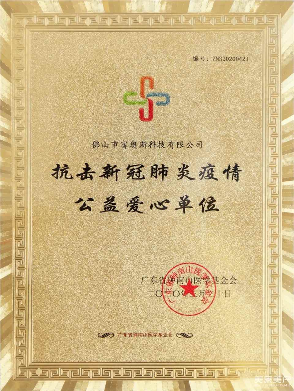富奧斯門窗被鐘南山醫(yī)學基金會評為新冠肺炎疫情公益愛心單位