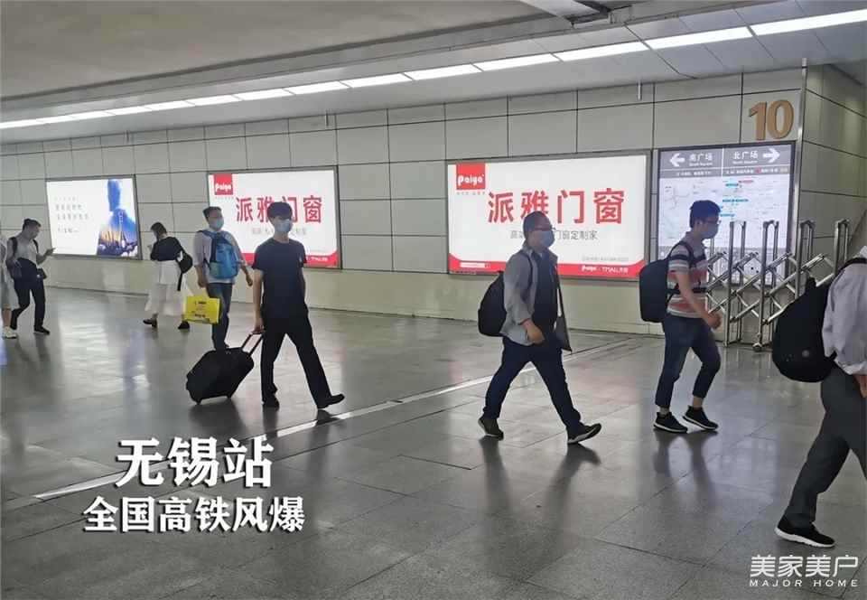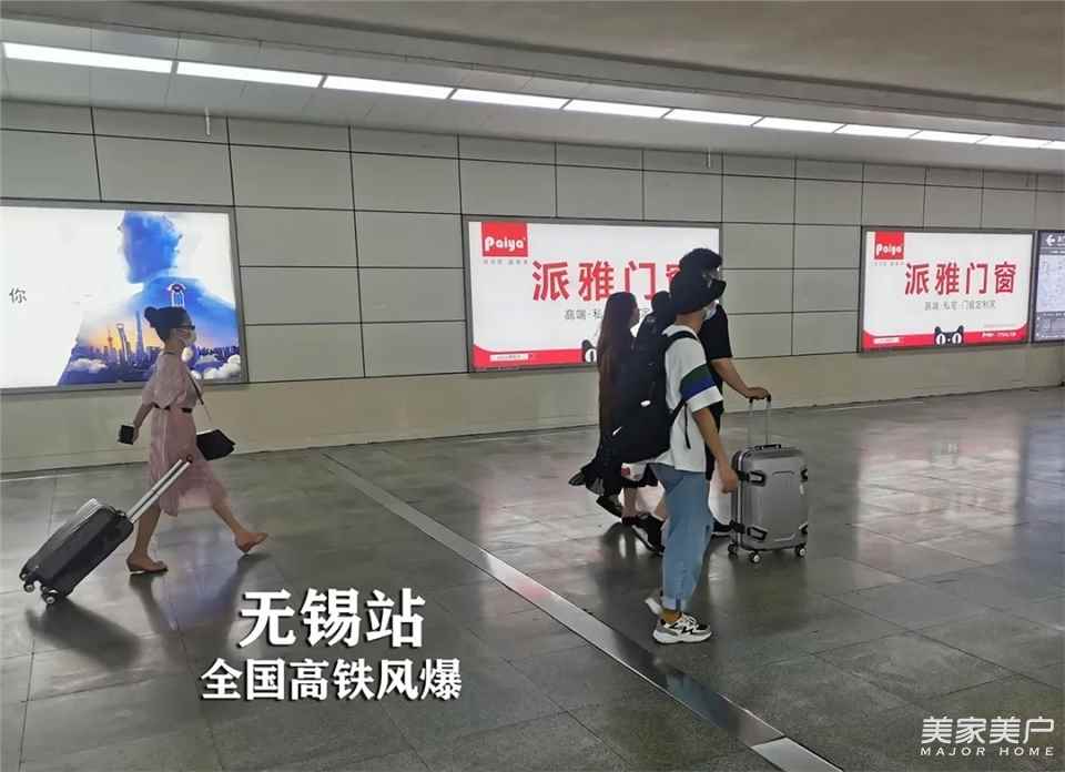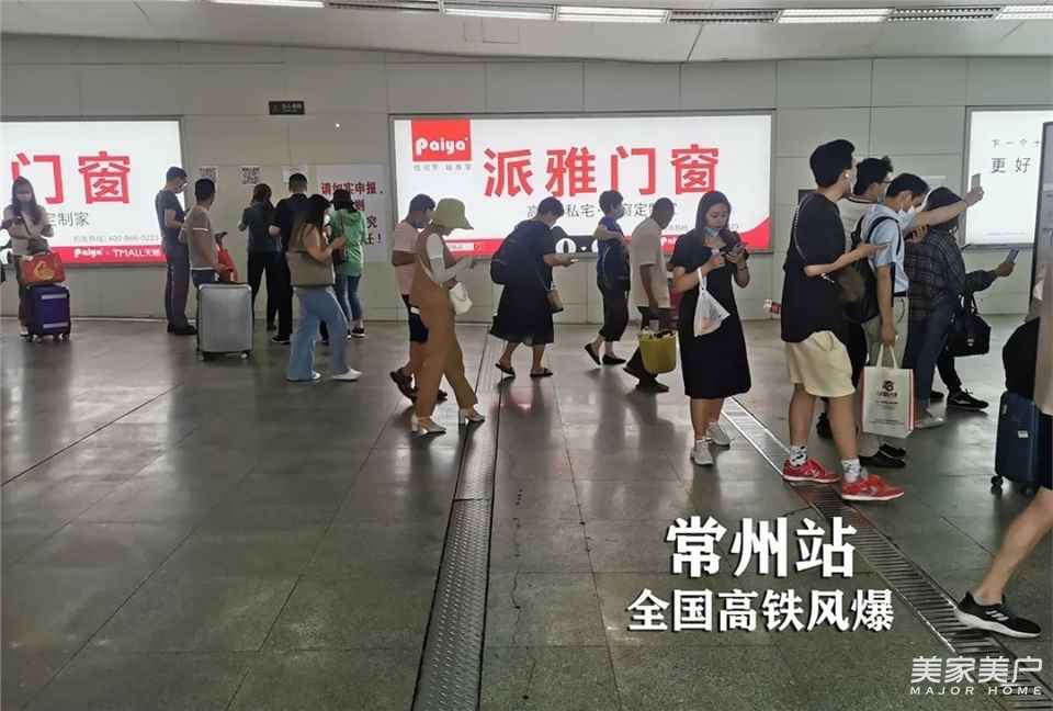 高鐵站舒適、高效的整體環境與派雅一直以來強調的“為用戶帶來更舒適、便捷的生活”相契合。派雅門窗圍繞中國最核心的高鐵線網,發揮縱貫南北的京滬、京寧高鐵的大動脈輻射作用,于蘇州站、常州站、無錫站等區域核心城市站點投放第四批高鐵廣告,預計日均人流量超1000萬+。派雅品牌廣告大面積霸屏,全天高鐵運營全時段進行循環播放,以強烈的視覺沖擊效果,向外界震撼發聲,全方位、多形式的精準傳達派雅品牌價值,大大提高了派雅的品牌知名度,提升了派雅的影響力。派雅大手筆強勢布局2020年,“搭乘”中國高鐵乘勢向上,打響火爆市場的一槍,賦能營銷。