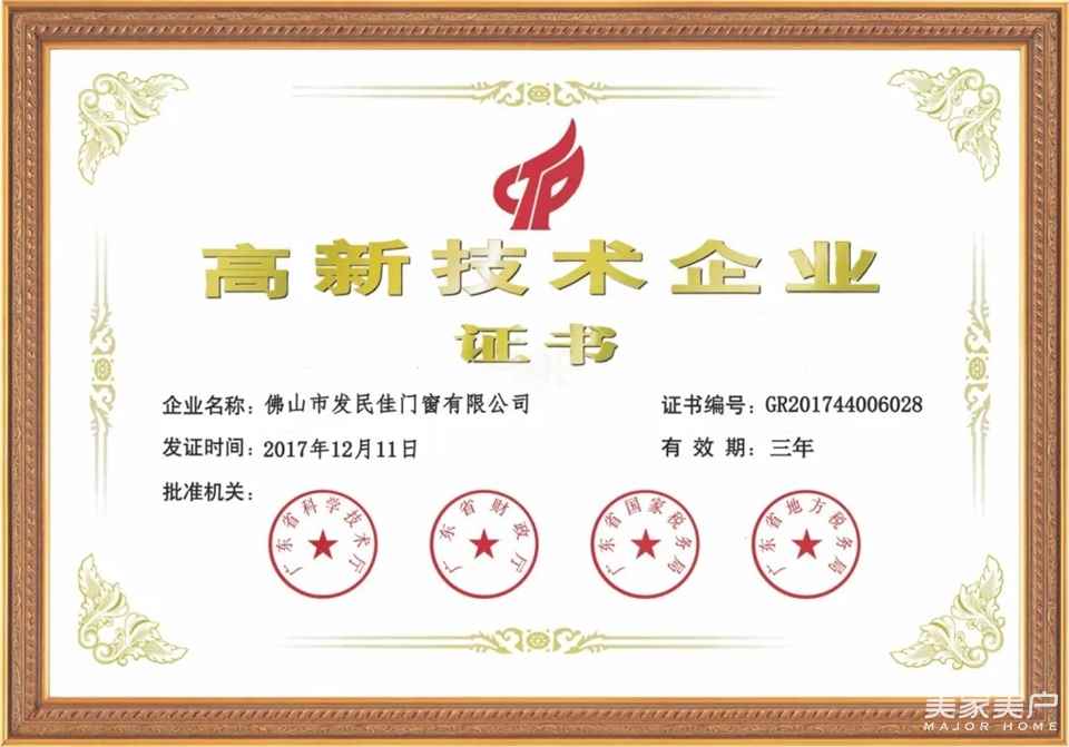 經廣東省知識產權局推薦,國家知識產權局審核通過,老賴不賴門窗(佛山市發民佳門窗有限公司)非常榮幸地成為國家知識產權優勢企業。