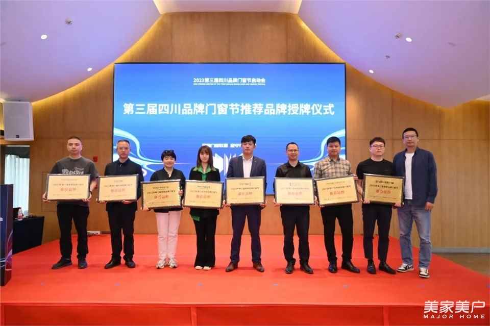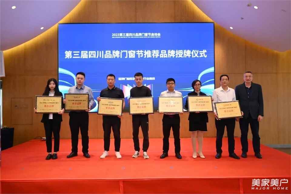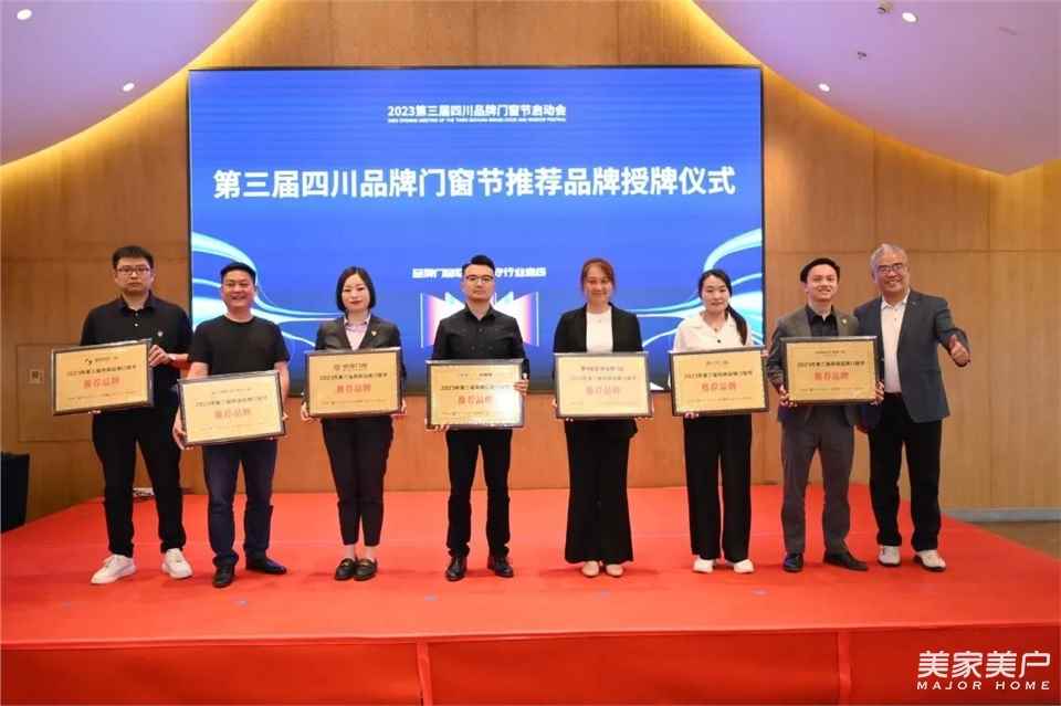協會及媒體代表為優秀參與品牌頒發“2023第三屆四川品牌門窗節推薦品牌”獎牌。