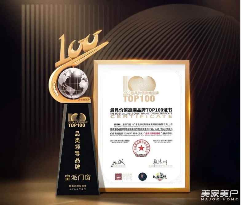 皇派門窗獲評“最具價值高端品牌TOP100「品類領導品牌」”