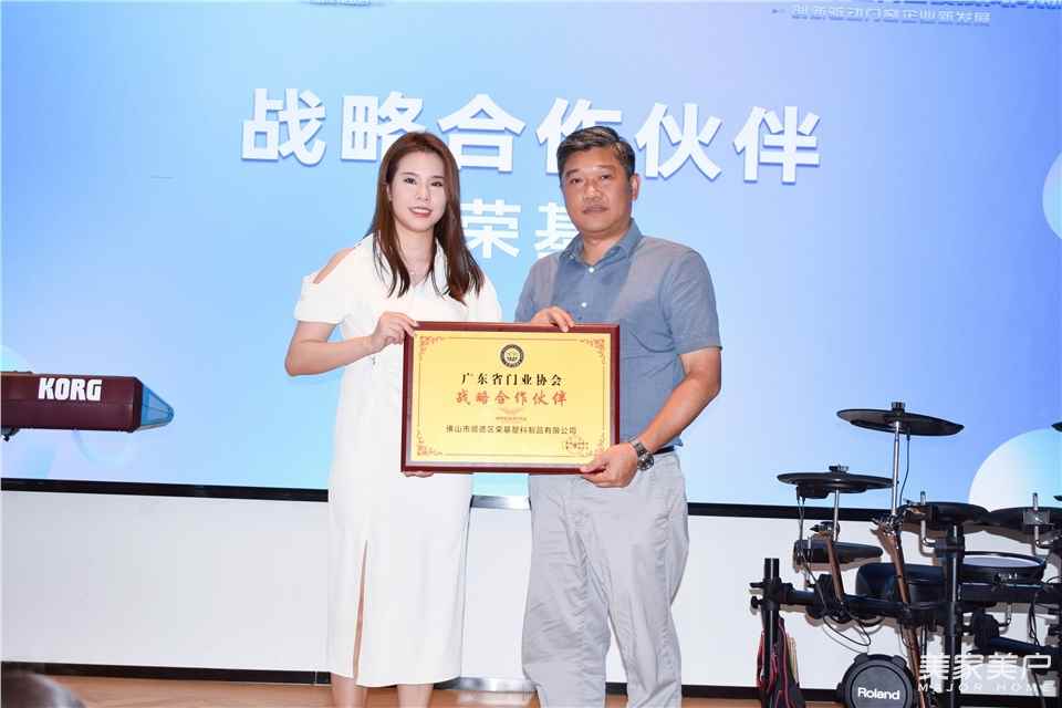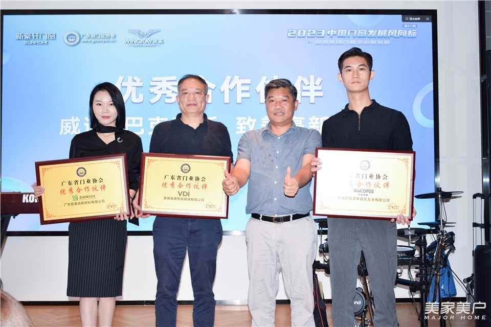 為了表彰產(chǎn)業(yè)鏈上下游企業(yè)對(duì)廣東省門業(yè)協(xié)會(huì)的大力支持,晚宴現(xiàn)場舉辦了隆重的授牌儀式。李鈞洪會(huì)長分別為榮基膠條頒發(fā)了廣東省門業(yè)協(xié)會(huì)戰(zhàn)略合作伙伴”牌匾,為威迪、巴克菲斯、致美頒發(fā)了“廣東省門業(yè)協(xié)會(huì)優(yōu)秀合作伙伴”牌匾。
