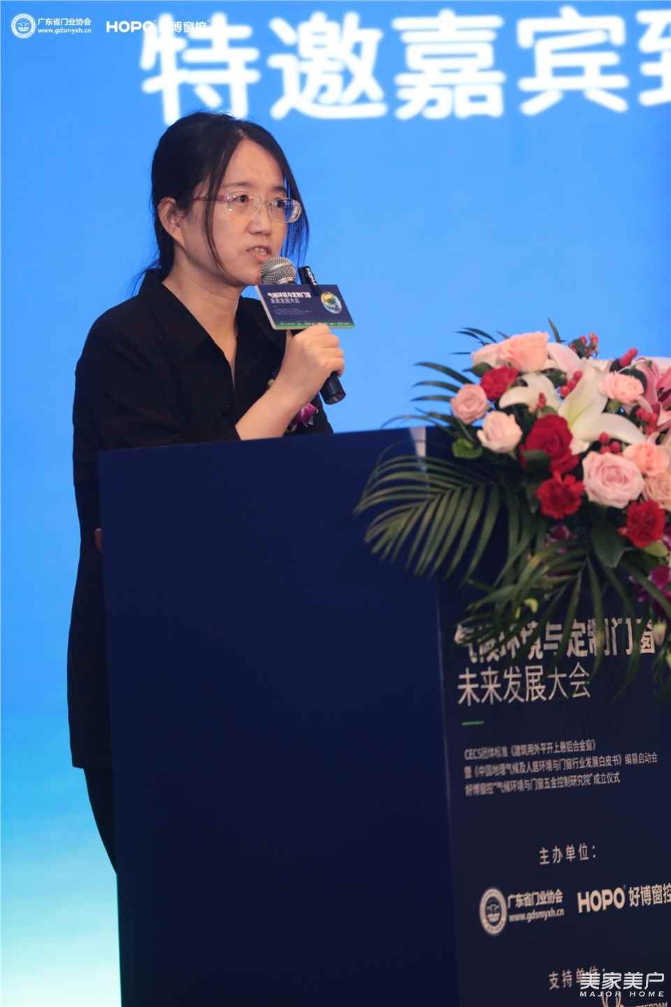 圣梵諾門窗總經理鄺艷華,“門窗行業的發展,需要專業的行業標準來引導。特別是門窗是碳排放的‘大戶’,對于實現‘雙碳’目標有著重要的作用。CECS團體標準《建筑用外平開上懸鋁合金窗》,對于門窗行業健康,起著重要的作用。我們也呼吁有更多專業的門窗標準出臺,為門窗企業以及行業指引方向。”