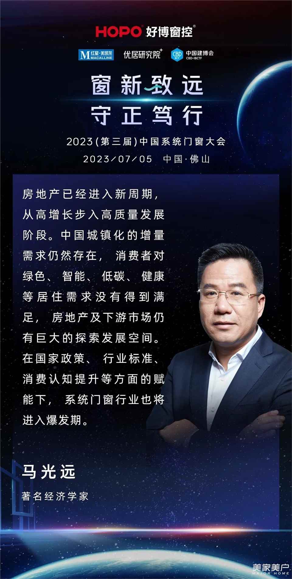 特邀嘉賓著名經濟學家馬光遠從當下中國城鎮化增量需求仍然存在出發,指出消費者對綠色、智能、低碳、健康等居住需求暫未得到滿足,在多方賦能下,系統門窗行業即將進入爆發期。