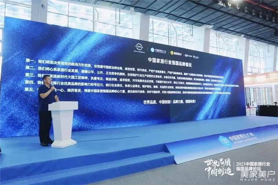 為積極響應國家號召,進一步展現中國企業實力和水平,提振中國信心,彰顯文化自信,推動中國家居行業品牌高質量發展,協會與行業領軍企業共同發起中國家居行業強國品牌倡議,北京霍爾茨家居科技有限公司總經理趙崇聯代表企業宣讀倡議。在與會來賓的共同見證下,大會隆重發布了“2023年中國家居行業強國品牌”。