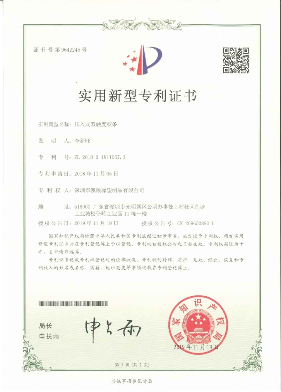 專利見證實力!澳順壓入式雙硬度膠條,專為快速翻新老舊門窗而研發!