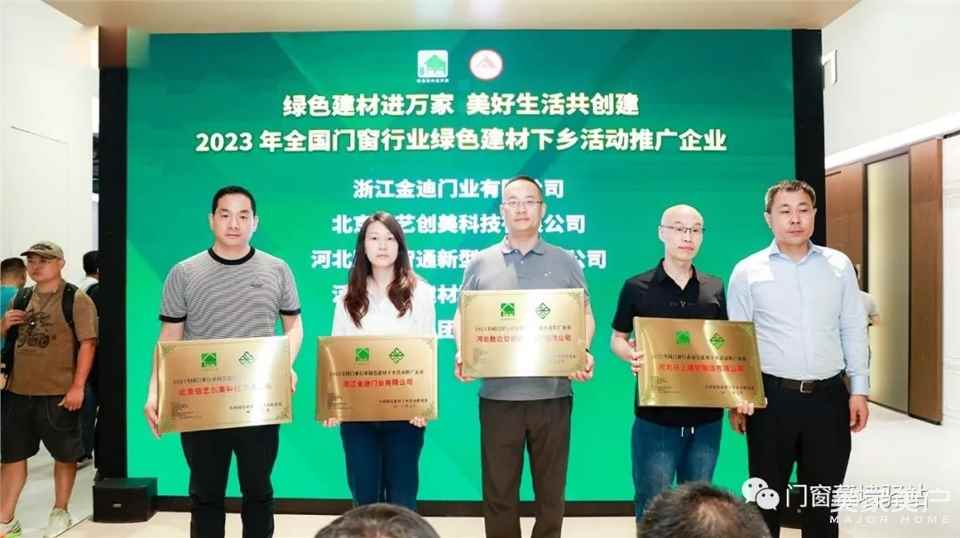 在國家工信部、住建部、商務(wù)部、市場(chǎng)監(jiān)督管理局的六部委的指導(dǎo)下,結(jié)合全國綠色建材下鄉(xiāng)活動(dòng)推進(jìn)組的指示精神和工作安排,在活動(dòng)現(xiàn)場(chǎng)進(jìn)行了2023全國門窗行業(yè)綠色建材下鄉(xiāng)活動(dòng)推廣企業(yè)的授牌。