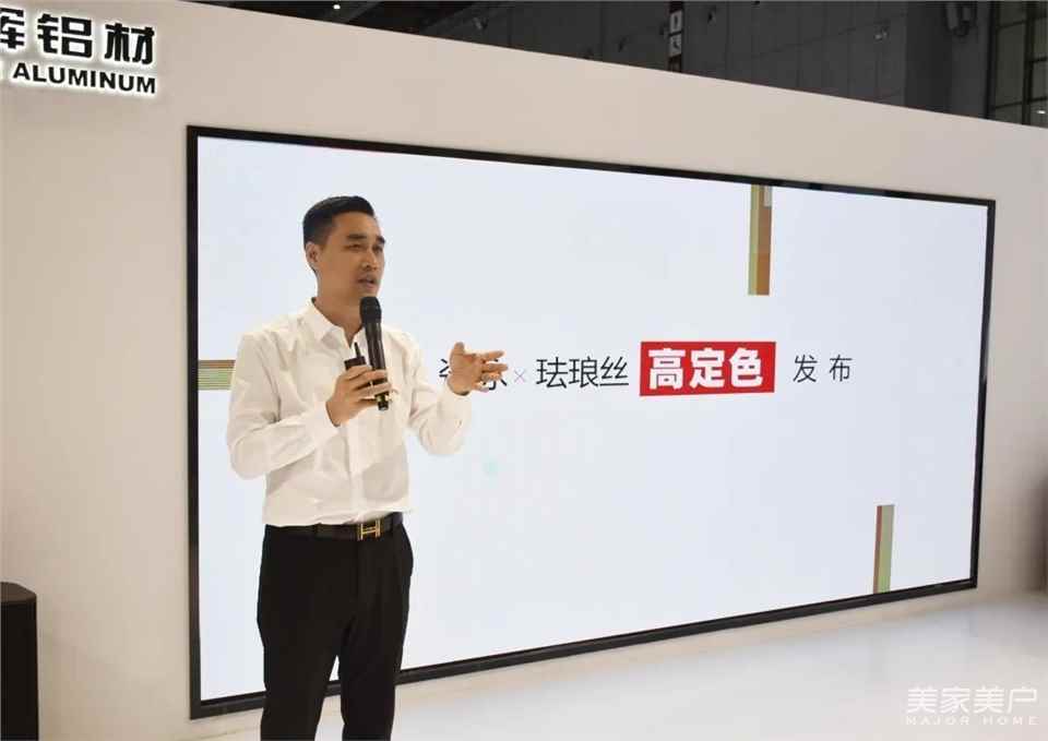 英輝鋁業深刻洞察消費者在家居色彩的偏好,向內挖掘用戶色彩情緒,在會上隆重推出瓷泳X琺瑯絲高定色系列。在《瓷泳X琺瑯絲高定色發布》主題演講中,英輝鋁業副總經理葉廣智對“瓷泳極光灰、瓷泳鈦空灰、琺瑯絲銀河灰”進行解說。