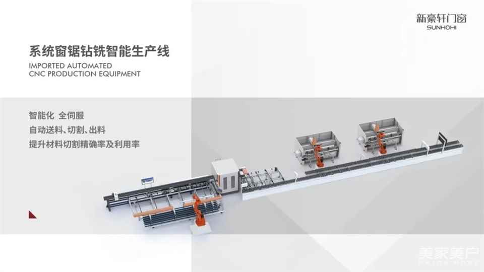 同時,引進「鋸鉆銑智能生產線」,以全伺服送料系統,節省5%材料損耗,進一步提高型材利用率,減少生產過程的材料浪費,并自動完成剩余材料的回收利用流程,實現生產零尾料。