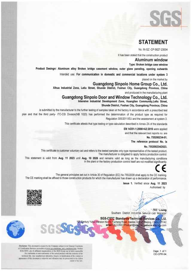 門窗CE認證參考的測試項目包括了水密性、氣密性、抗風壓、扣緊裝置的安全性能等多項測試驗證,標志著圣堡羅產品質量過硬,符合國際要求,產品達到歐盟指令規定的安全要求。