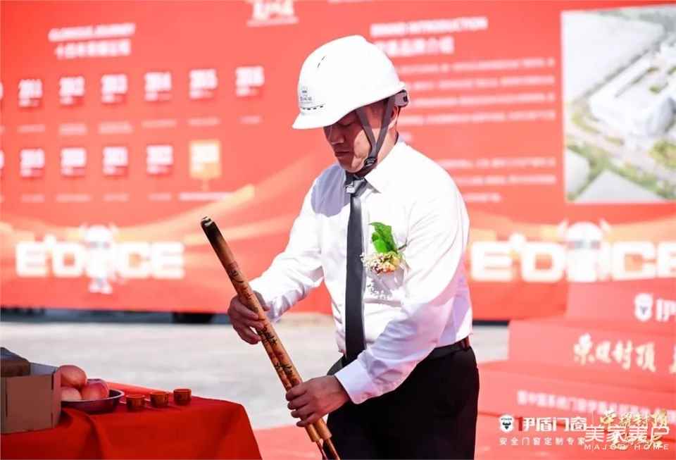 伊盾門窗董事長張龍偉攜重磅領導、嘉賓帶著美好的祝愿和祝福共同揮動金鍬,澆筑最后一方混凝土進行封頂。伴隨著漫天彩炮和喜慶的禮炮聲,本次封頂儀式圓滿禮成!