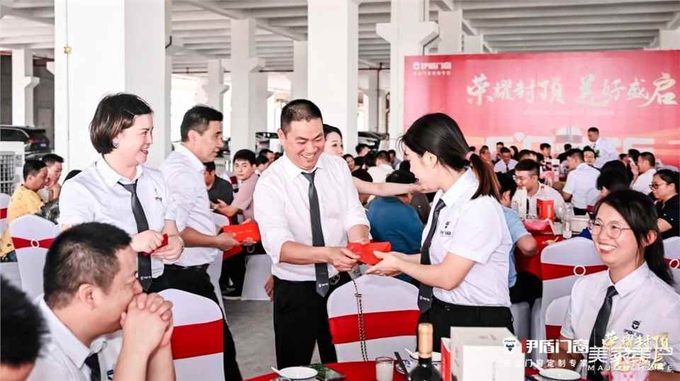 封頂儀式結束后,伊盾門窗舉辦了答謝午宴,為前來支持伊盾門窗的各界朋友送上了答謝紅包及禮品,傳遞封頂之喜。本次封頂儀式也在喜氣洋洋的氛圍中圓滿落下了帷幕。