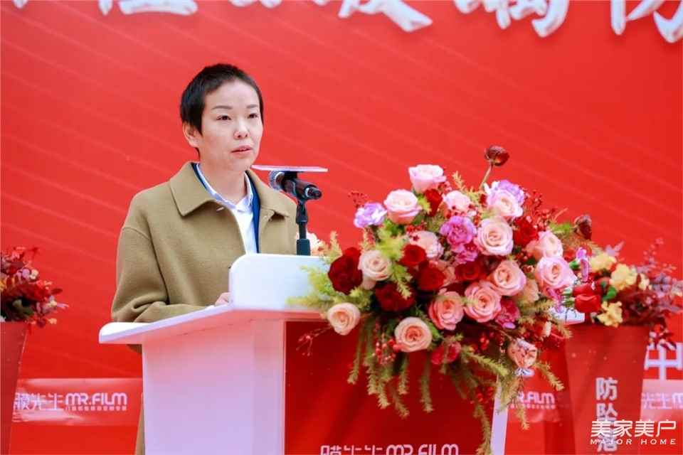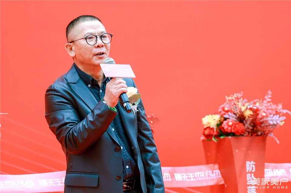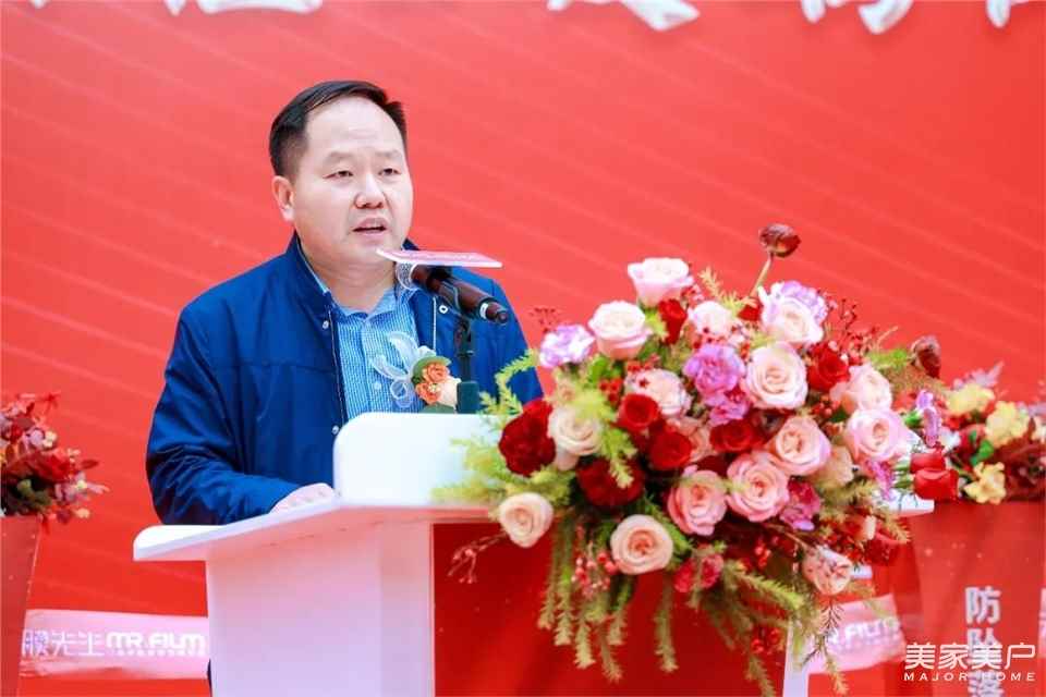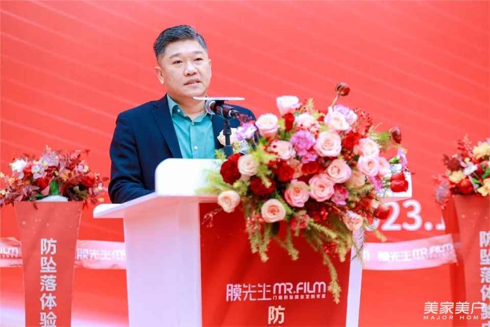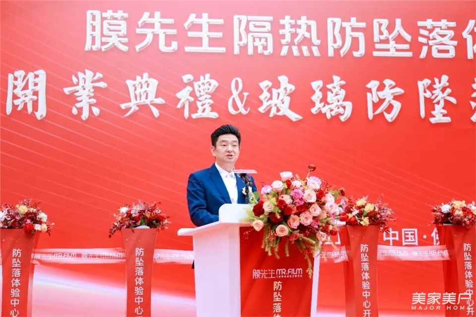 佛山市膜先生新材料科技有限公司董事長王浩杰向大會作致辭,感謝各級領導和同仁們蒞臨現場,并對膜先生的革命性產品玻璃隔熱防墜落安全門窗膜作詳細介紹。