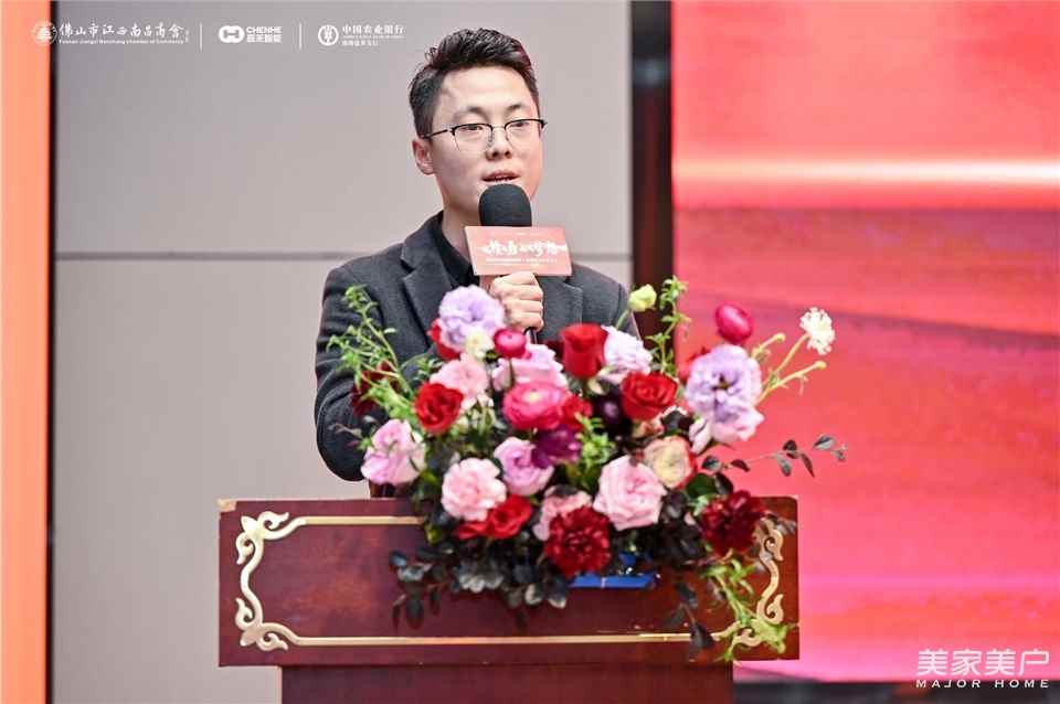 山東辰禾智能裝備有限公司總經理周光新致辭,周光新在致辭中提到,佛山作為家裝門窗的聚集地,辰禾智能裝備有限公司的產品可以為門窗企業提高生產效率。
