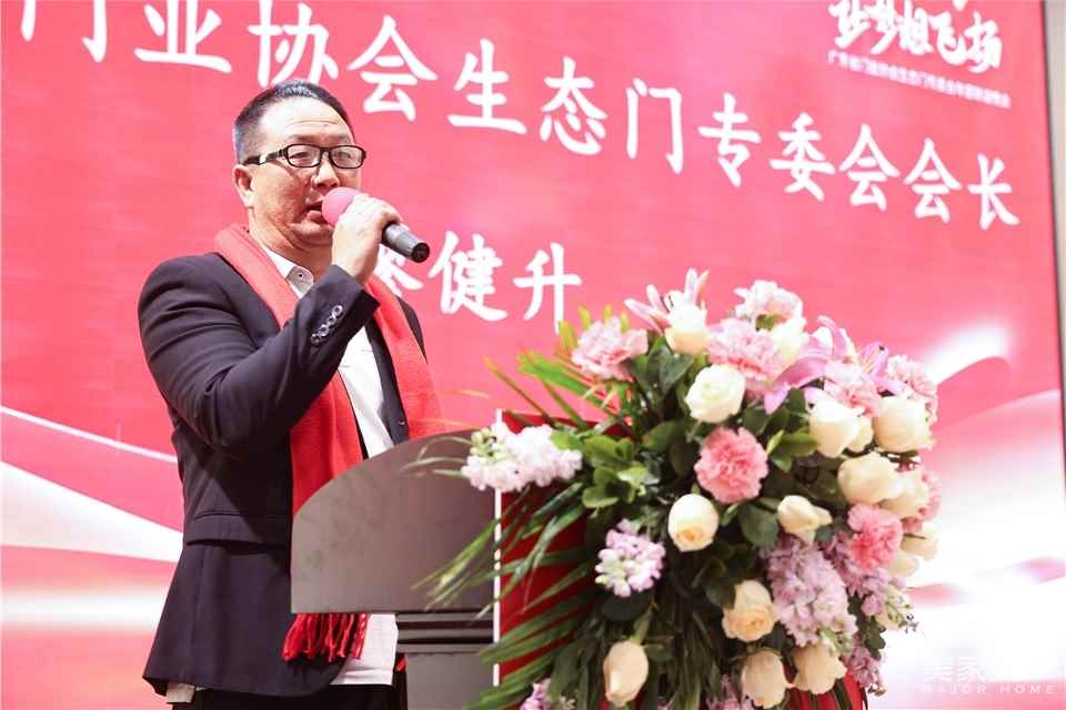 廣東省門業協會生態門專委會會長廖健升在致辭時介紹,“生態門專委會從2019年成立至今天,歷經雖然辛酸,但我們走過來了,而且發展速度很快,從疫情前的30多家門廠,發展至今92家企業,108個車間,1860個營銷個體,180多家上游供應合作伙伴,滿滿擦亮了中國門業重鎮廣東小欖東升門業的旗號。”