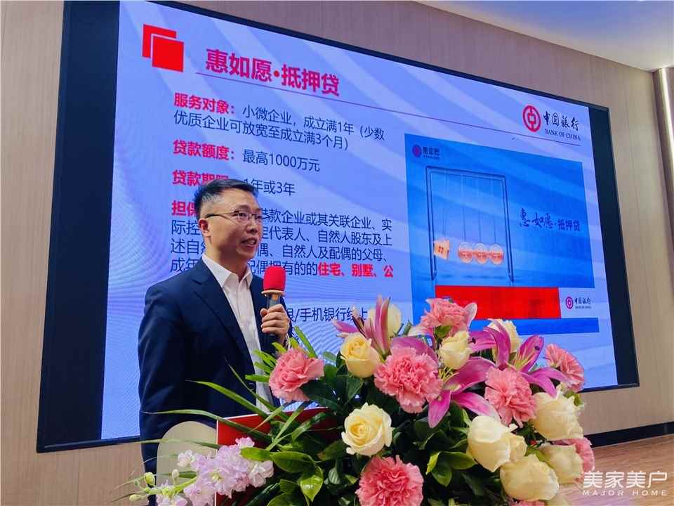 中國銀行東升支行李毅副行長介紹了“中國銀行普惠金融產品”。中國銀行為門業企業推出了抵押貸、廠房貸、科創貸、商E貸、E抵貸等多種金融產品,解決門業企業融資難問題,全力支持東升門業的發展。
