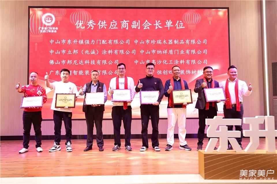 龍騰盛世,共賀新春!1月20日,“展望未來,讓夢想飛揚”2024廣東省門業協會生態門專委會新年聯誼晚會在中山東升門業基地舉行。廣東省門業協會執行會長徐生、廣東省門業協會秘書長饒德亮,廣東省門業協會生態門專委會會長、中山市掌門人門業有限公司總經理廖健升,廣東省門業協會生態門專委會執行會長、中山市鼎誠門業有限公司總經理梁玉林,廣東省門業協會生態門專委會執行會長、中山市同福門業有限公司總經理黎銘彪,廣東省門業協會生態門專委會執行會長、中山市創居門業有限公司總經理趙蜜,中山市小欖鎮高沙社區黨委書記譚玲顏、書記馮華祥、黨委副書記馮輝坦,以及中國銀行東升支行行長楊章、副行長李毅,廣東省門業協會生態門專委會秘書長賴連才等領導以及廣大會員,歡聚一堂,總結過去,展望未來,用滿腔的熱情,勾勒2024年廣東生態門最美的夢想。