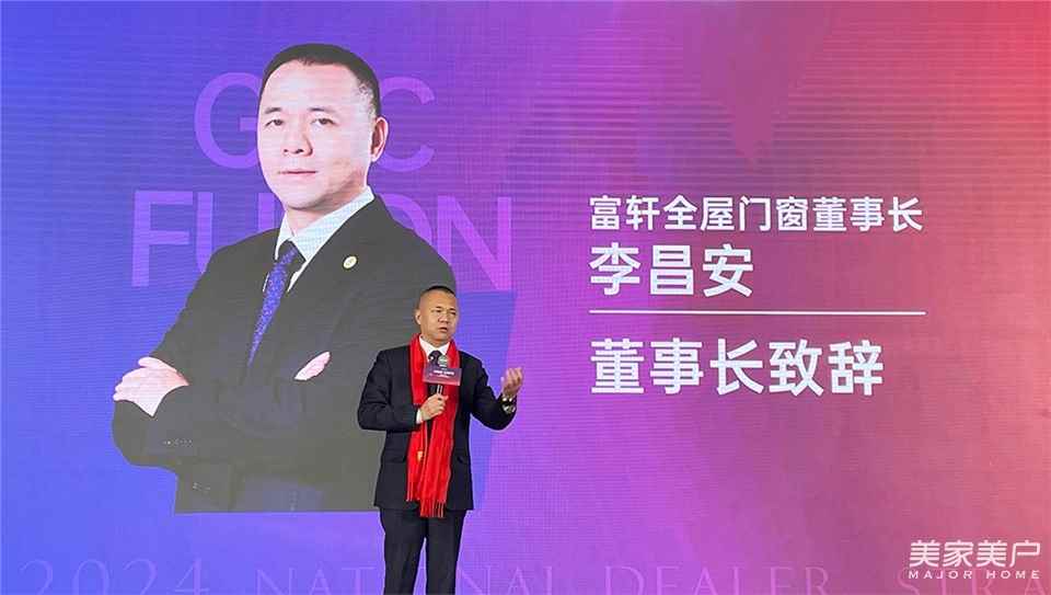 富軒全屋門窗本次2024年全國經銷商戰略峰會特別邀請了眾多行業大咖、行業媒體共同出席本次峰會。富軒全屋門窗董事長李董在下午峰會開始發表重要致辭,對全國經銷商家人、行業媒體朋友到來表示熱烈歡迎,李董表示今天的會議內容十分精彩有料,希望大家都能收獲滿滿,不虛此行。