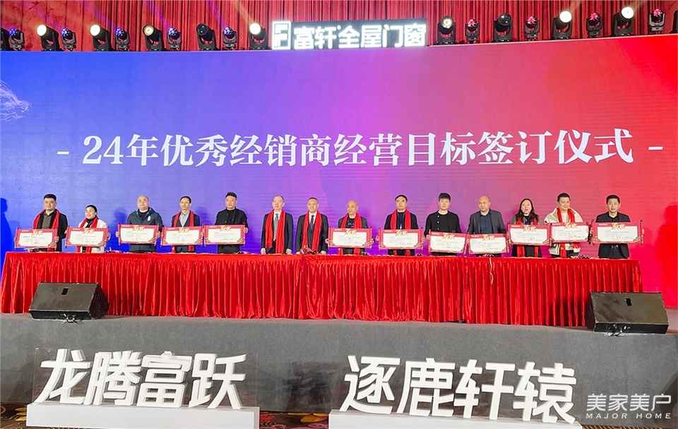 認領目標,使命必達。隨后,富軒全屋門窗還舉行了全國經銷商2024年度銷售目標認領儀式以及優秀經銷商經營目標簽訂儀式,希望全國經銷商家人們都可以緊盯目標,不怕困難、滿懷信心地跟進富軒總部的步伐,將定下的目標銘記于心,實現2024年營銷業績新飛躍!
