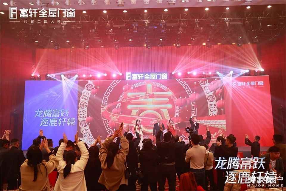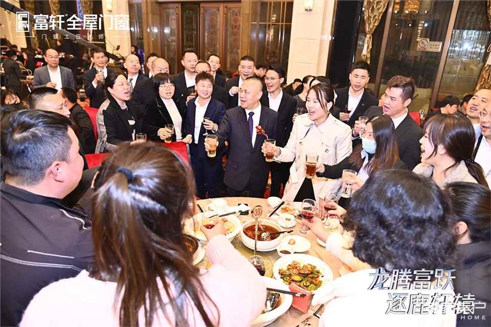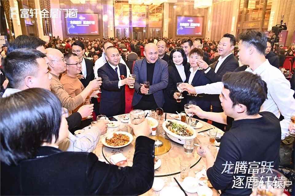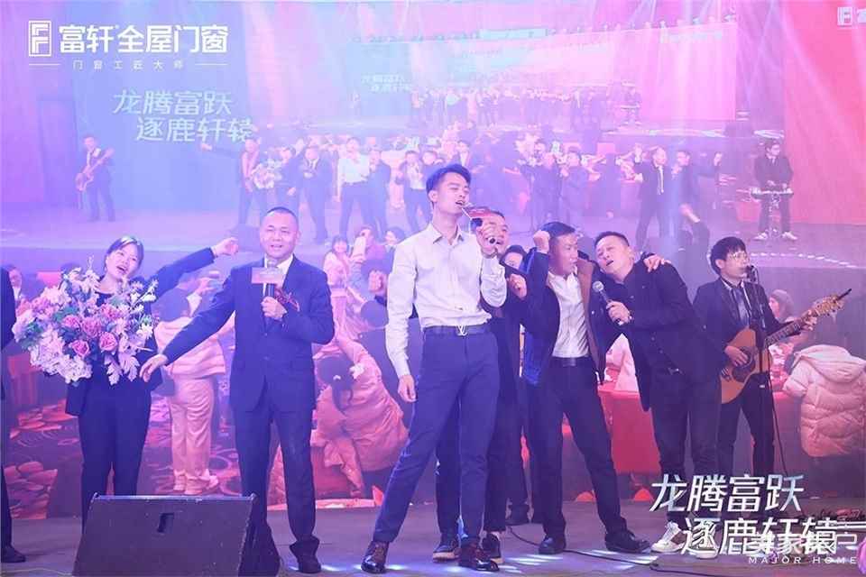 富軒全屋門窗董事長李董帶領公司高層領導以及與會嘉賓們到場慶賀,眾人開懷暢飲,暢享相聚之樂,盡饗美食佳肴,現場熱鬧溫馨,其樂融融。各種極具觀賞性的文藝演出輪番上演,還有潮流樂隊熱歌暖場,精彩紛呈,場內到處都是家人們的歡聲笑語和鼓掌聲。