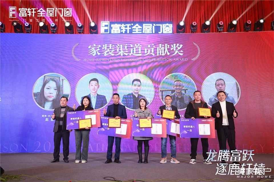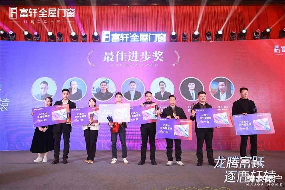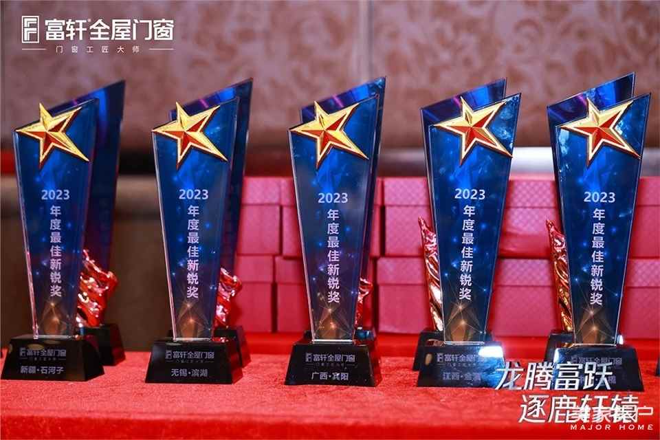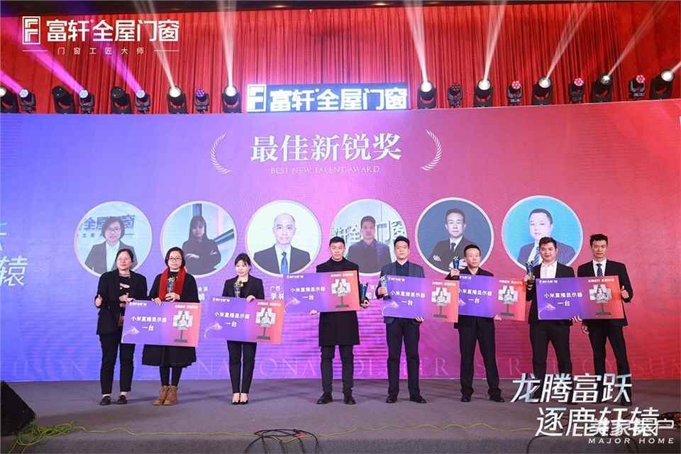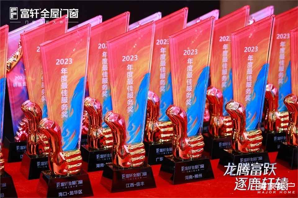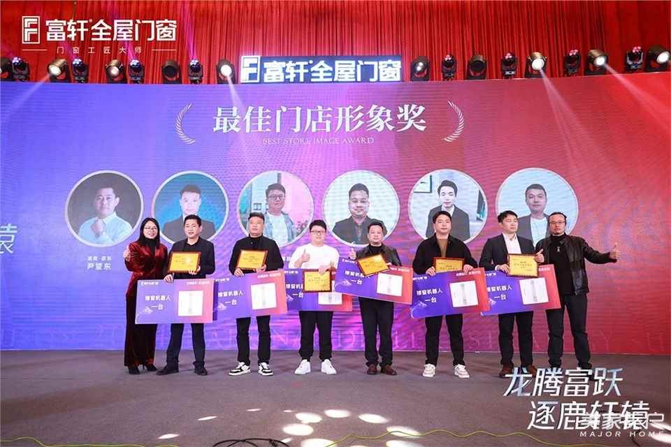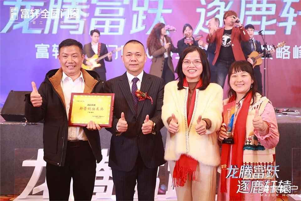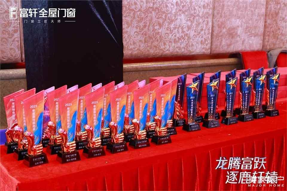 接下來晚宴進入到頒獎環節,富軒全屋門窗門窗對在2023年度為富軒作出重大貢獻、取得輝煌戰績的富軒家人代表進行表彰和加冕。