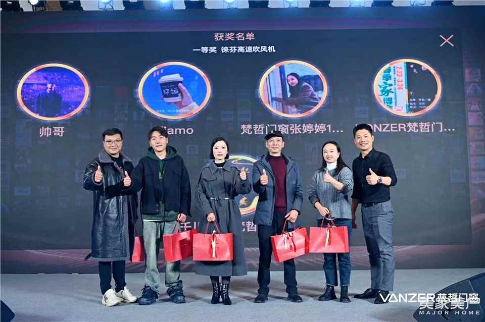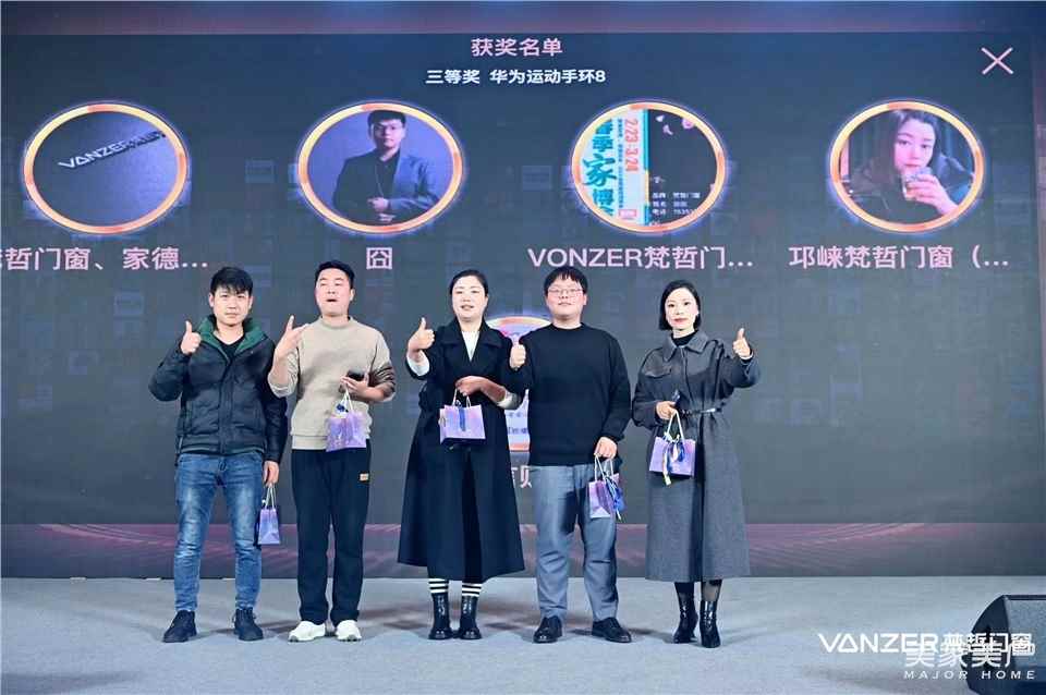 期間,梵哲門窗總經(jīng)理杜濤云、副總經(jīng)理梁玉成、營銷總監(jiān)張小虎等公司管理層登臺祝酒,寄語大家2024年生意興隆!龍行龘龘!
