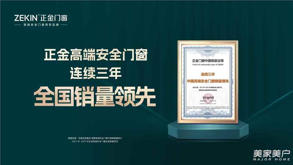 正金門窗:連續三年中國高端安全門窗銷量領先| 權威認證 實至名歸