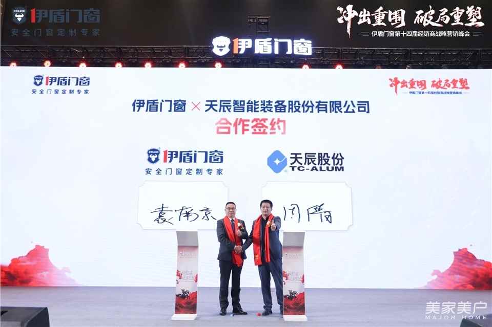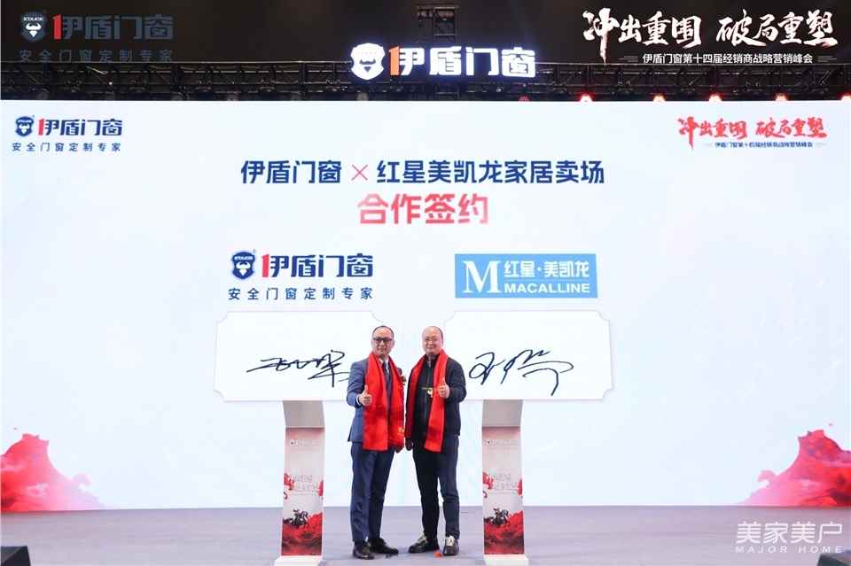 隨后,伊盾現場與天辰智能、交廣傳媒、紅星美凱龍、匯創傳媒、德國格屋五金、小紅書等合作單位舉辦了隆重的戰略合作簽約儀式,從產品力、生產力、營銷力等層面為終端全面賦能。