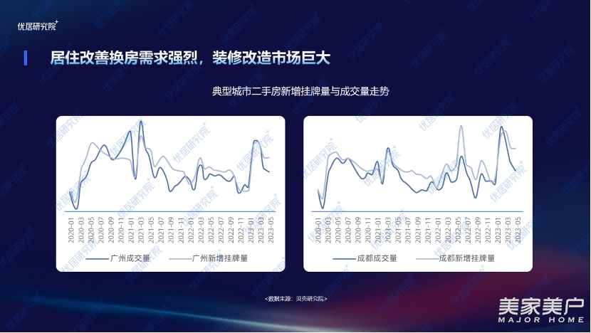 目前,我國家裝行業已步入整體增速放緩的成熟期,舊改、舊房翻新、二次裝修的存量房產再裝修市場空間廣闊。2023年上半年,隨著裝修需求的逐步釋放,裝修市場回暖明顯。