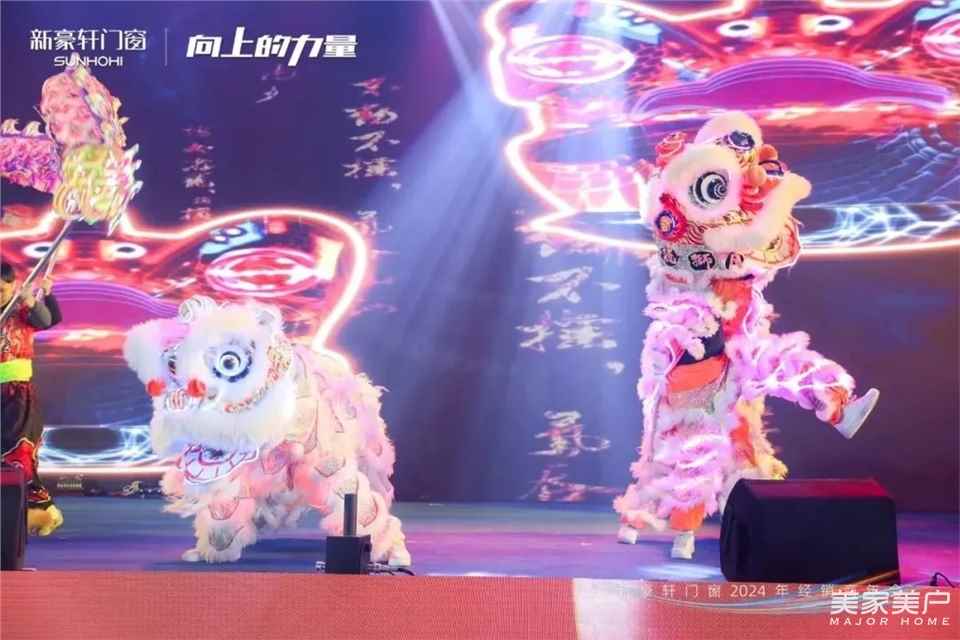 在悠揚的音樂聲中,新豪軒門窗千人家宴在晚上6點正式開宴。五湖四海的經銷商在龍年齊聚一堂,舉杯慶祝歡樂的時光。舞臺上的醒獅與騰龍,預示著全體新豪軒人在2024年龍行大運、生意興隆。