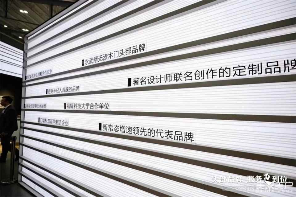 萬嘉信品牌館的設計十分亮眼,整體用疏密燈光線條打造出一個五維空間的景象,塑造出時光穿越的空間氛圍,體現了萬嘉信木門站在十年后,打造年輕家的理念。不僅是木門很優秀,萬嘉信的門墻柜一體全屋設計的產品也是相當強悍的。其獲得了2023門墻柜一體化技術進階成就獎、無漆木門十佳品牌、門墻柜產業-完美一體化呈現力獎、“門墻柜一體化碳行者” 等諸多殊榮。千呼萬喚始出來,猶抱琵琶半遮面,萬嘉信不鳴則已一鳴驚人啊,據說為了這次參展,萬嘉信人足足準備了半年之久。這個永武縉走出來的無漆木門頭部品牌,正以昂首向前狂奔的姿態,走出永康,走出國門,走向世界……