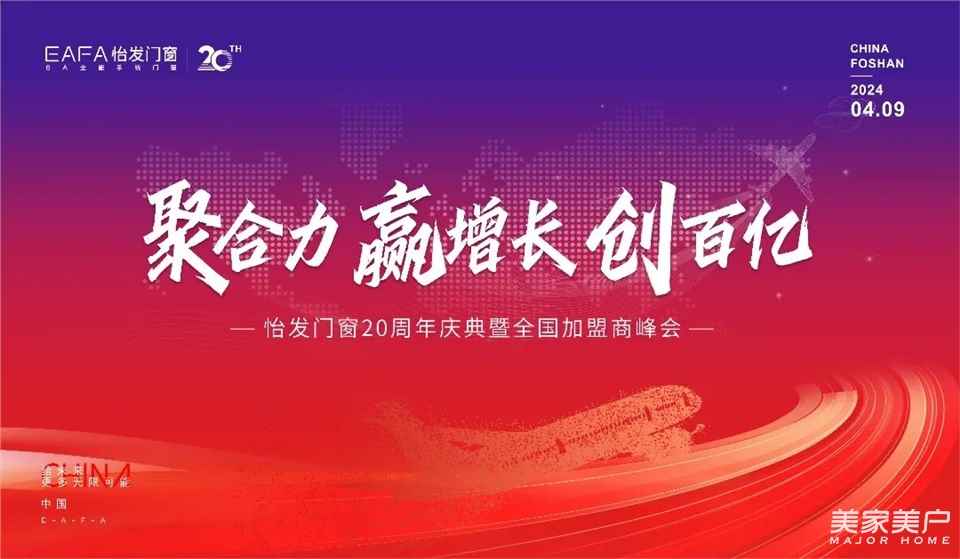 啟航新征程,躍過龍門展宏圖,2024年的精彩故事正緩緩書寫。4月9日,怡發(fā)門窗聚合力贏增長創(chuàng)百億”20周年慶典暨全國加盟商峰會在佛山隆重舉行。各位加盟商家人們共襄盛舉,不忘初心,回顧過去2023年的奮斗歷程;攜手并進(jìn),以滿腔熱血共同開創(chuàng)2024年的新篇章!
