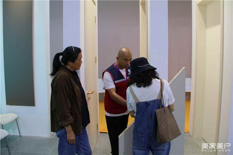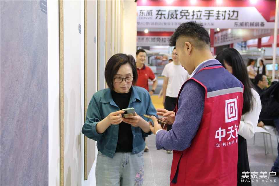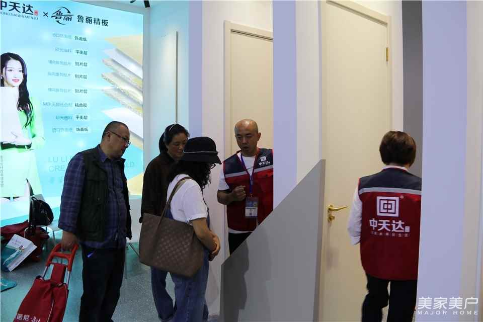 展位上,不少觀眾前來參觀,大家被展出產品深深吸引,紛紛合影留念。同時,中天達木業工作人員熱情向大家介紹了魯麗與愛麗諾兩大品牌的產品情況,用言簡意賅的語言介紹了兩大品牌在材質、工藝等方面的優勢,對兩大品牌的內涵、品味進行了梳理,大家興趣盎然,仔細聆聽,作了詳細的記錄。在深入了解產品信息之后,不少顧客表達了強烈的采購與合作意向。