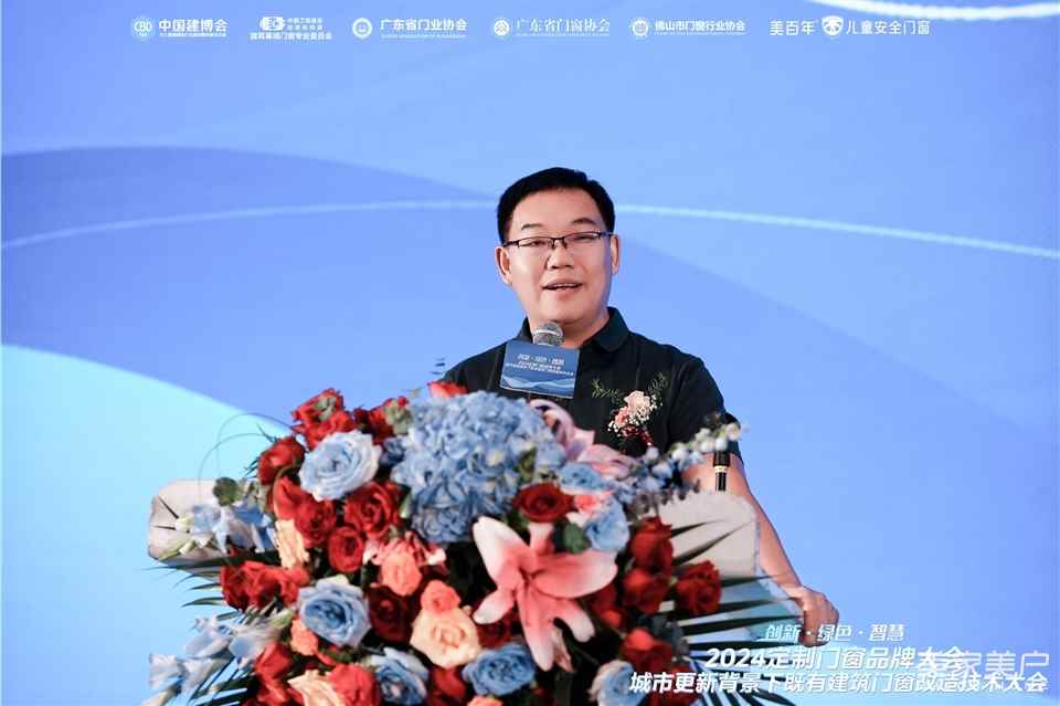 作為本場晚宴的總冠名單位,佛山市門窗行業協會門窗公益專委會理事長、美百年門窗家居總經理、門窗創二代、抖音博主賴錦良為大會致辭。他表示,“進入門窗行業11年,經過深入思考之后,決定要把門窗做得跟別人不一樣,美百年定位兒童安全門窗,我們要做的就是門窗界的沃爾沃。”