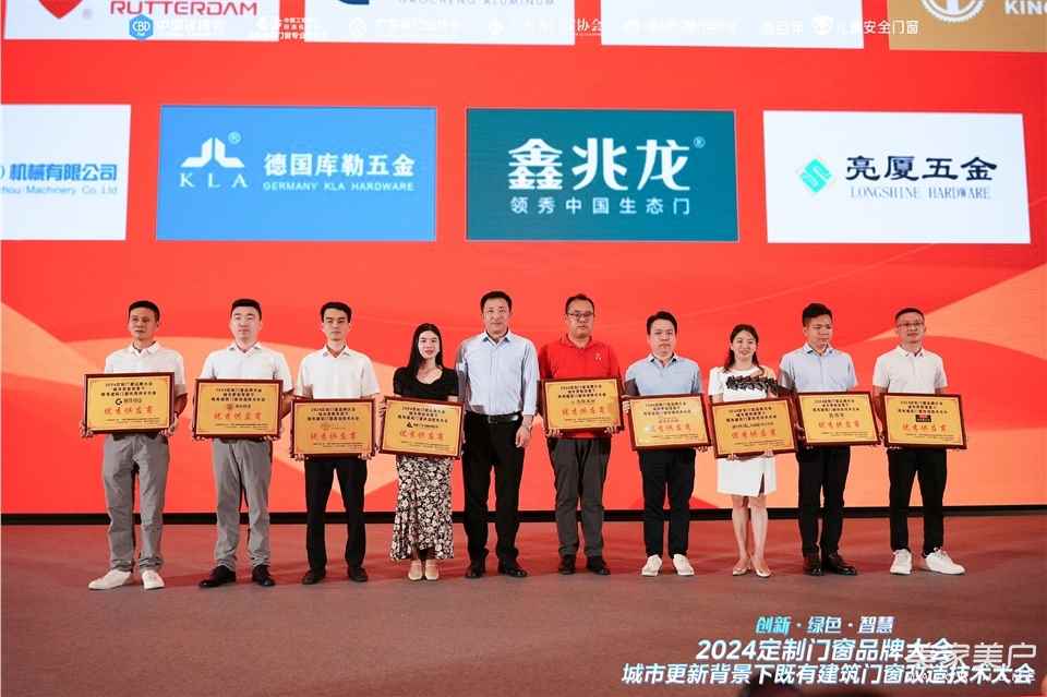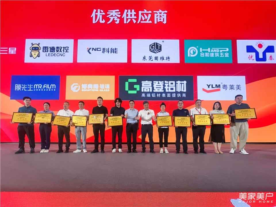 本次活動的成功舉辦,離不開行業上下游企業的鼎力相助和大力支持。在晚宴現場,與會領導和嘉賓為表現突出的企業頒發了榮譽牌匾。美百年門窗榮獲“榜樣企業”“安全技術創新企業”兩項榮譽,榮基膠條斬獲“優秀合作伙伴”殊榮,亞鋁、興三星、雷德數控、科能、東莞固維特、合和建筑五金、優泰、酷家樂、膜先生、博奧騰玻璃、高登鋁材、粵萊美、麓特丹、高成鋁業、博友玻璃、金工機械、金利豐機械、聯德機械、德國庫勒五金、鑫兆龍、亮廈五金、瀚必威防斷裂角碼、貴州頤酒、呈現品策,分別榮獲“優秀供應商”殊榮。