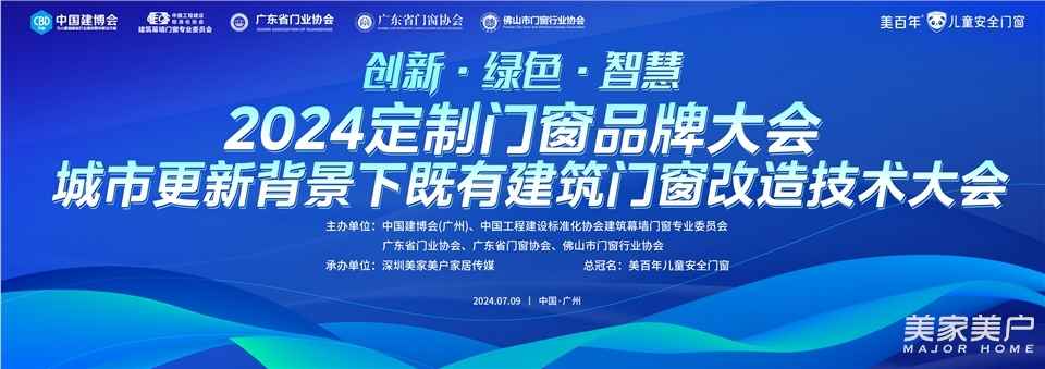 7月9日,由美百年總冠名的2024定制門窗品牌大會暨城市更新背景下既有建筑門窗改造技術大會在廣州廣交會堂二樓會議大廳舉行。本次大會以“創新、綠色、智慧”為主題。行業領導、專家學者、業內大咖、產業鏈上下游企業代表,以及行業權威媒體,相聚一堂,共同為門窗行業的未來發展謀篇布局。