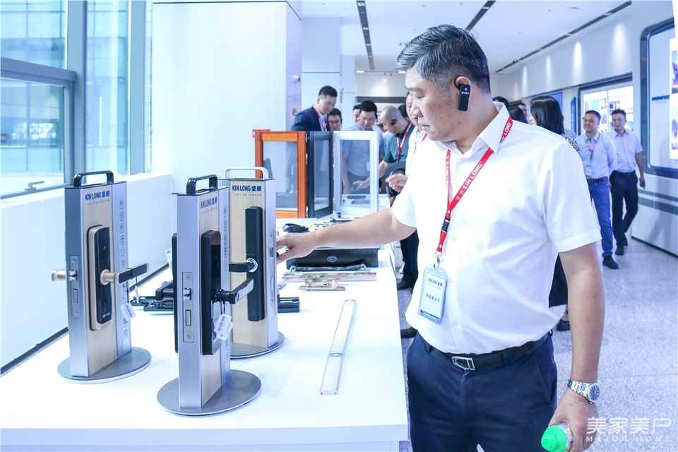 14日上午,在堅朗五金東莞總部,協會一行首先參觀了堅朗五金的產品展廳。堅朗五金最新打造的2萬多平米的現代化展廳,全面展示了堅朗五金以品質為先的品牌文化,以及其產品在公共建筑和商業建筑配套、學校醫院建材配套、智能機械化和廠房產業園等領域的應用效果。