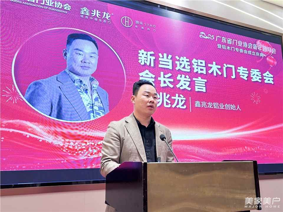 2025年1月8日,2025廣東省門業(yè)協(xié)會新年團(tuán)拜會暨鋁木門專委會選舉成立大會在佛山南海大瀝新世紀(jì)大酒店舉行。廣東省門業(yè)協(xié)會會長、派雅門窗董事長李鈞洪,廣東省門業(yè)協(xié)會執(zhí)行會長徐生、秘書長饒德亮,皇派門窗董事長朱福慶、圣堡羅整體門窗董事長吳國洪、新豪軒門窗總裁馮佐星、保羅漢紗門窗董事長羅振海、致尚門窗副董事長李鈞海、富奧斯門窗副董事長賀杰雄、享裕安門窗董事長黃秋盛、安格爾門窗董事長羅漢標(biāo)、榮高門窗董事長黃榮高、鑫兆龍鋁業(yè)創(chuàng)始人陳兆龍、安晨門窗董事長陳鵬、正金門窗總經(jīng)理劉科特、美百年兒童安全門窗總經(jīng)理賴錦良、百利瑪門窗副總經(jīng)理黃麗玲、索哲門窗營銷總經(jīng)理蔡松坤、韻宅木門董事長陳志立、嘉木麗家董事長劉揚北、以及部分鋁木門相關(guān)企業(yè)負(fù)責(zé)人:伊歌鋁木門董事長陳優(yōu)善、賽禾極簡門董事長陳寶善、匯仟鋁木門董事長鄭月明、帝贊門業(yè)董事長陳建、禧萊鋁木門董事長裴勇、所奧鋁木門董事長梅探、洐之鋁木門董事長李華軍、榮華居鋁木門董事長吳坊、陌斯鋁木門董事長劉壯科、尼蘭德門業(yè)董事長陳禮洲、美利輝門窗董事長屈光輝等,共同出席了本次大會。本次大會得到鑫兆龍鋁業(yè)、賽禾極簡門的大力支持。