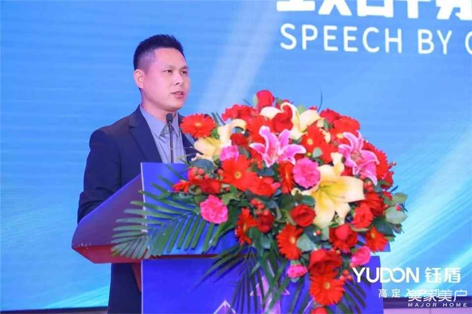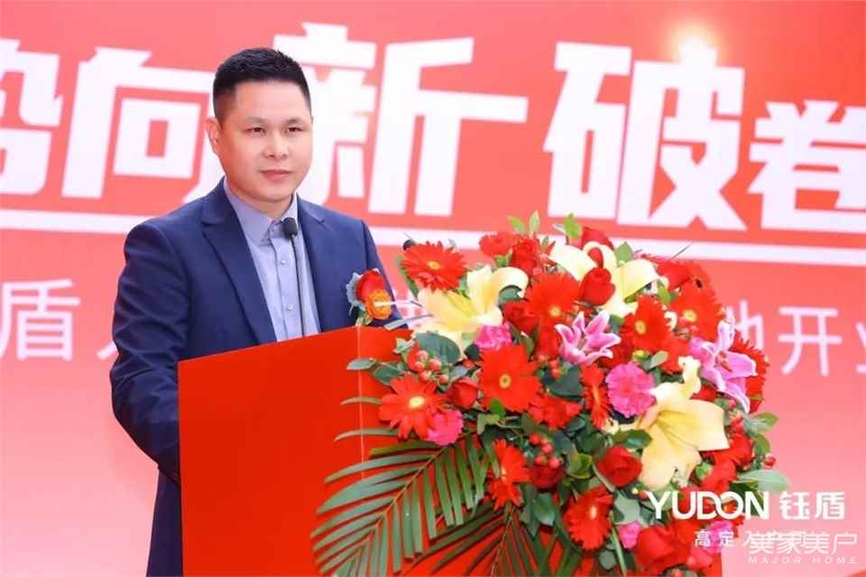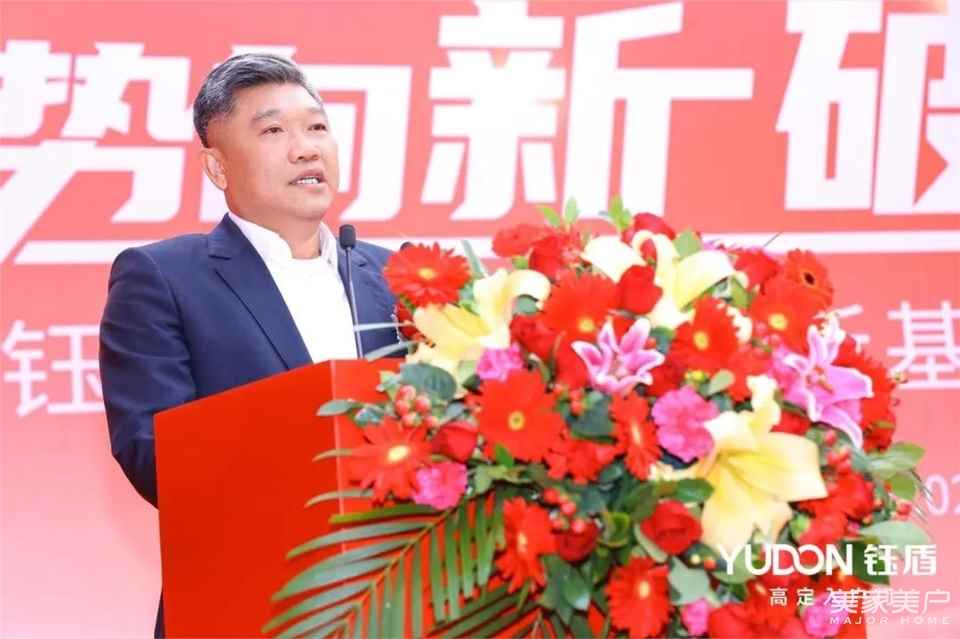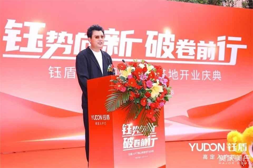 盛典伊始,賀源糧董事長上臺致歡迎辭,賀總向現場所有來賓和各界朋友們表示熱烈的歡迎和衷心的感謝,并表示全新亮相的鈺盾全新智造基地和高定體驗館,是品牌具有里程碑式的全新突破,更是鈺盾品牌面向新征途的新起點和發力點。鈺盾將以此為契機,不斷優化產品結構,提升服務質量,夯實高端入戶門行業領軍品牌形象。