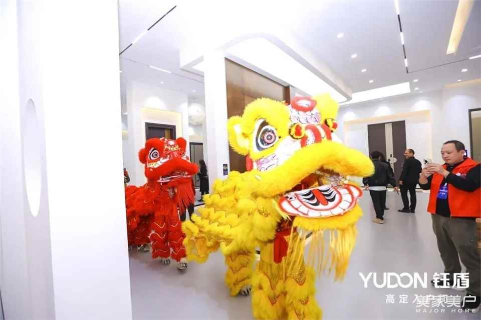 雄獅引領眾領導嘉賓一同進入鈺盾全新高定體驗館,在喜氣吉祥的氣氛中揭幕儀式圓滿禮成,全新體驗館閃耀面世,陸續迎來八方來賓的參觀。鈺盾高定體驗館以現代簡約風格為基調,一步一景,移步換景,呈現出沉浸式多元場景體驗。體驗館巧妙植入品牌元素,不僅全方位展現了鈺盾原創設計產品的魅力,更充分展示了高定入戶門精湛的工藝及高品質的五金配件,更使鈺盾高端入戶門品牌的形象深入人心,讓鈺盾品牌成為點燃行業力量的新引擎。