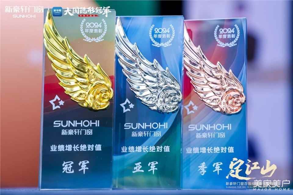 過去一年,全國各地涌現出一批批深耕市場、銳意進取的經銷商精英,助力新豪軒門窗以強勁的品牌勢能和穩健的業績增速,共同駕馭市場風浪。為表彰2024年度為公司發展做出重要貢獻的優秀經銷商代表,新豪軒門窗先后頒發了年度“業績增長絕對值”“全國業績TOP10”等多項重磅大獎,祝愿他們勇攀新巔,鑄就輝煌。